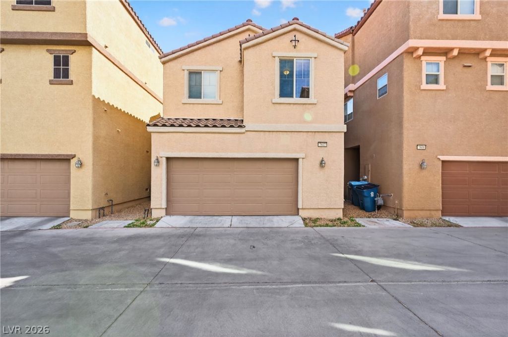 This beautiful 3 bedroom, with 2 1/2 bathrooms is located just off the 95 Freeway near N Durango and Farm Road. The community has two nice pools! Low maintenance landscaping with good size front patio and a 2 car garage. Kitchen has granite countertop, matching color appliances and tiled flooring downstairs and in wet areas, carpets on stairs, upstairs hall and bedrooms. All interior of home was recently repainted less than a year ago.